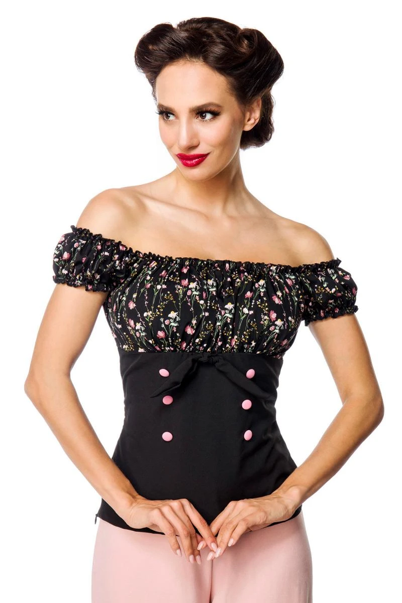 Retro Oberteil mit Raffungen, Zierknöpfen und Reißverschluss – femininer Vintage-Look von BELSIRA für stilbewusste Auftritte